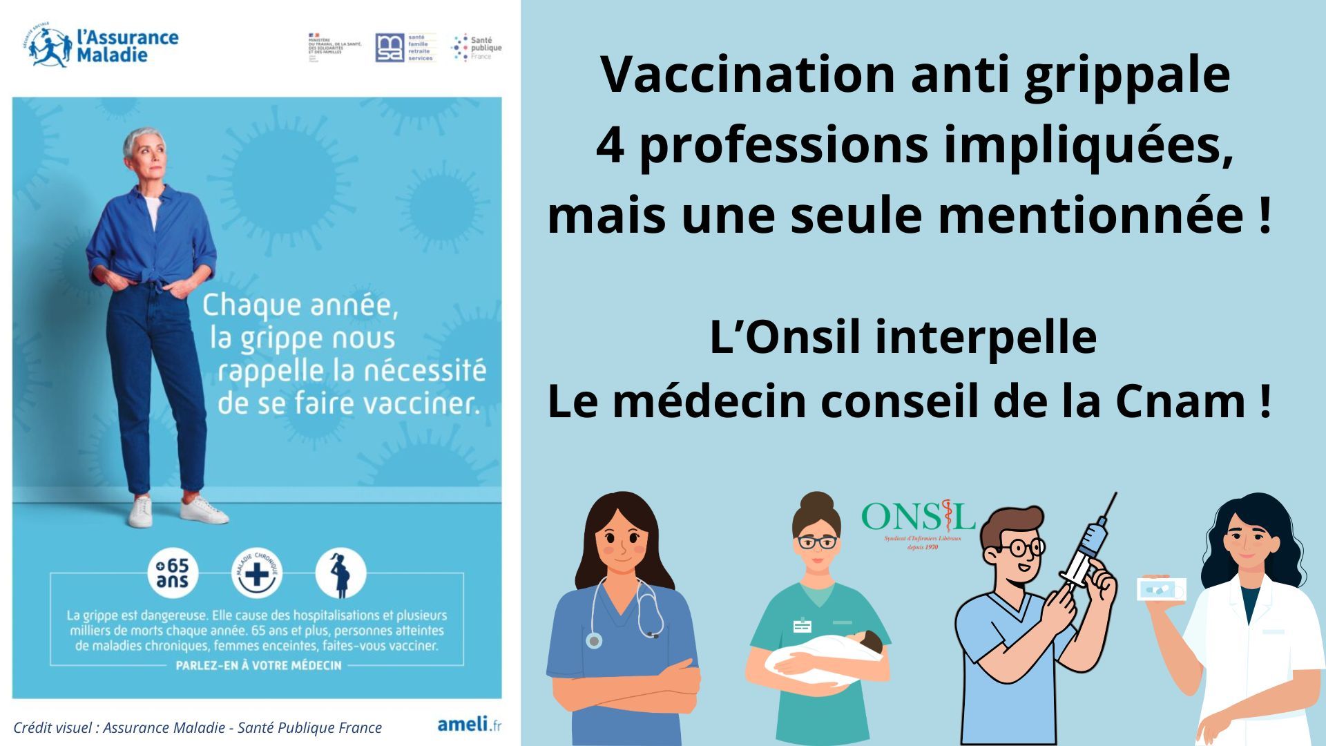 Vaccination antigrippale 4 professions impliquées, mais une seule mentionnée ! L’Onsil interpelle Le médecin conseil de la Cnam ! Malheureusement, les choses ne changent pas…