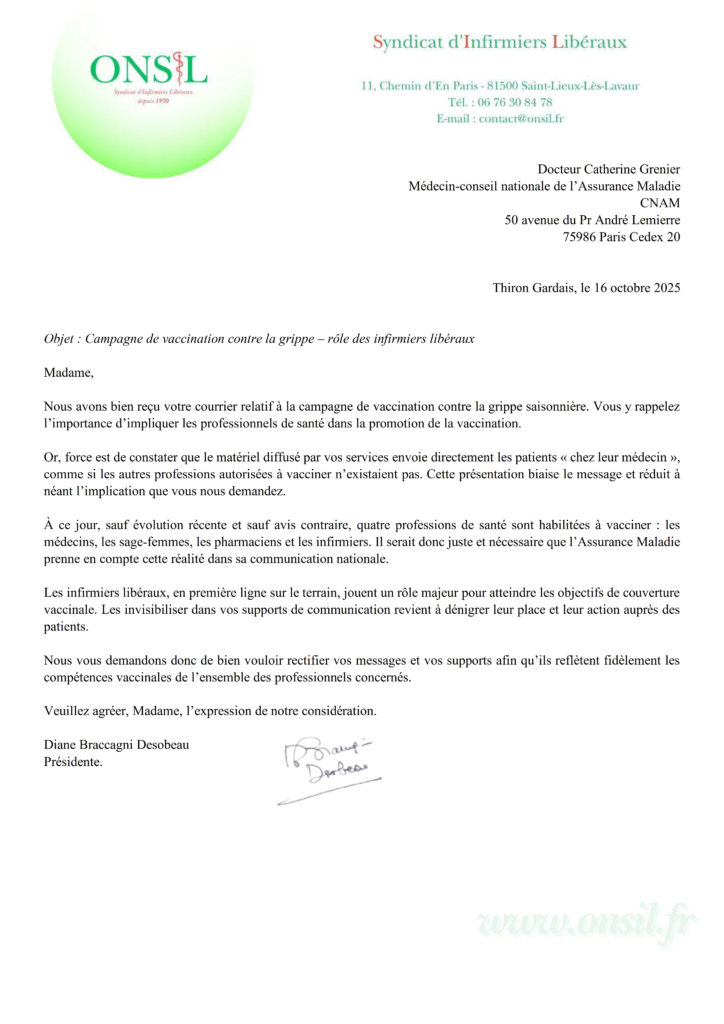 Vaccination antigrippale 4 professions impliquées, mais une seule mentionnée ! L’Onsil interpelle Le médecin conseil de la Cnam ! Malheureusement, les choses ne changent pas…