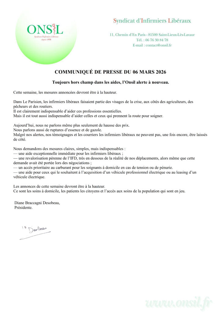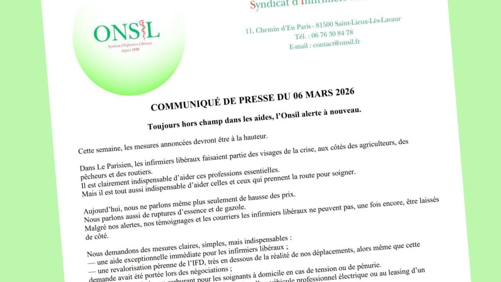 À travers ce communiqué, l’Onsil appelle à la mise en place de mesures concrètes et adaptées afin de garantir l’accès aux soins et la pérennité de l’exercice libéral infirmier.