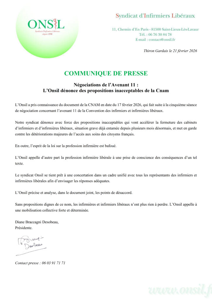 COMMUNIQUE DE PRESSE : négociations de l’Avenant 11, l’Onsil dénonce des propositions inacceptables de la Cnam. Sans propositions dignes de ce nom, les IDEL n’ont