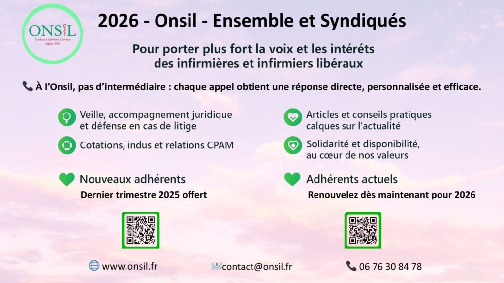 2026 – Onsil, Ensemble et Syndiqués ! Pour porter plus fort la voix et les intérêts des infirmières et infirmiers libéraux Dernier trimestre 2025 offert