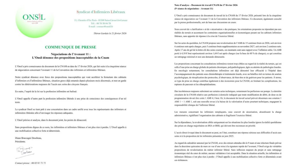 COMMUNIQUE DE PRESSE : négociations de l’Avenant 11, l’Onsil dénonce des propositions inacceptables de la Cnam. Sans propositions dignes de ce nom, les IDEL n’ont