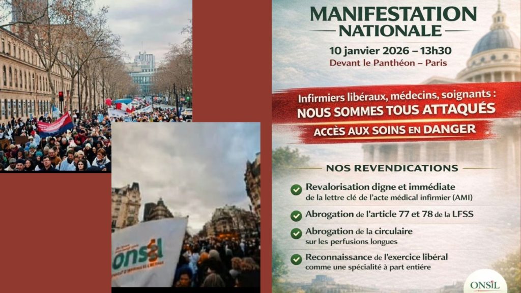 Manifestation du 10 janvier : les infirmiers libéraux prennent la parole Mobilisation nationale du Panthéon aux Invalides – Onsil, Convergence Infirmière et Infin’idels unis pour